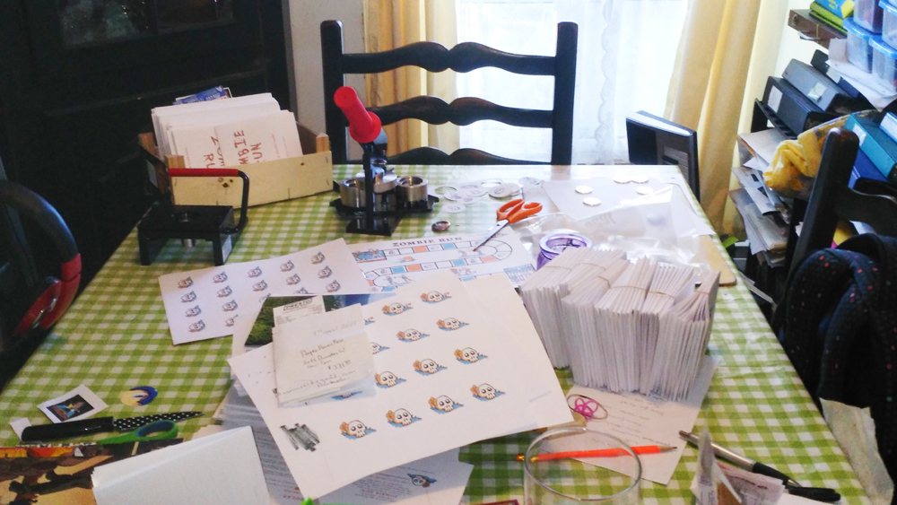 Once everyone was happy with it, printed and hand-folded 300 copies of the game.